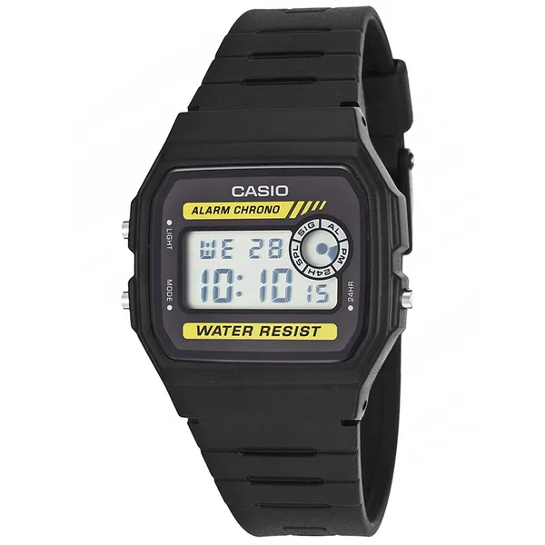 • Férfi digitális karóra, fekete műanyag szíjjal, WR30, 34 mm