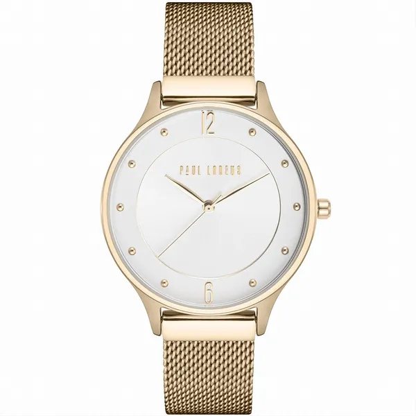 • Paul Lorens női kvarc karóra, ezüst számlap, arany fémszíj, 36 mm