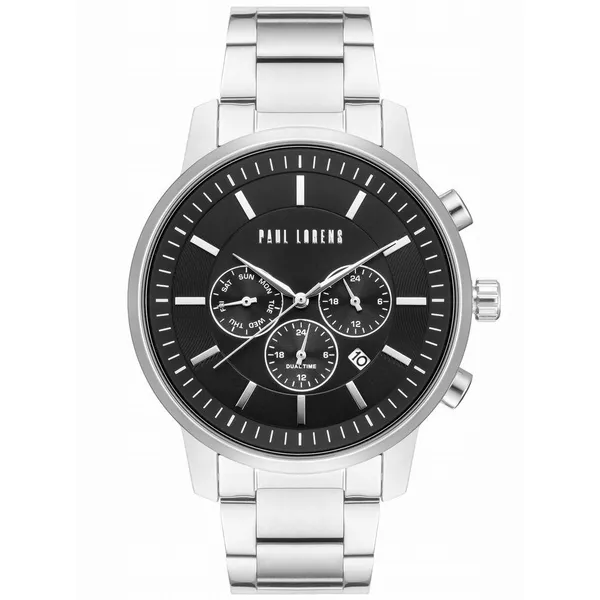 • Férfi karóra fekete számlappal, ezüst acél szíjjal, 46 mm