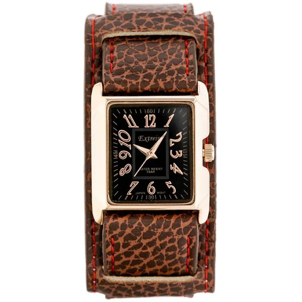 • Női kvarc karóra fekete számlappal, barna pánttal, rózsaarany