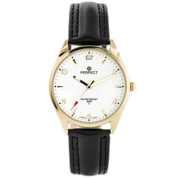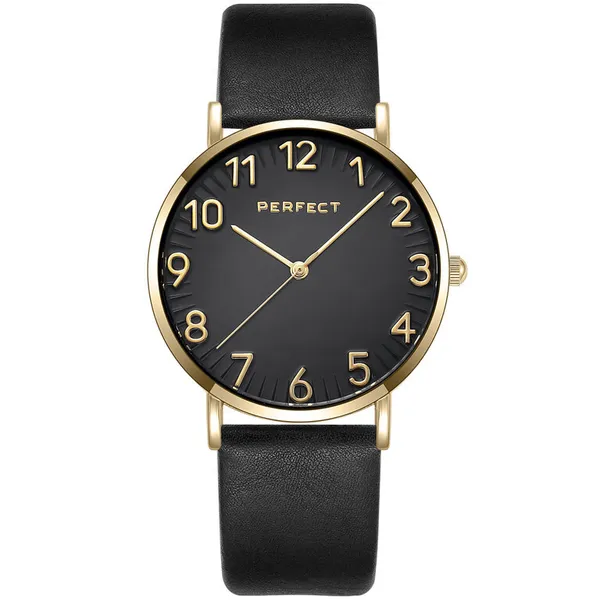 • Perfect női kvarc karóra, fekete számlap, arany tok, bőrszíj