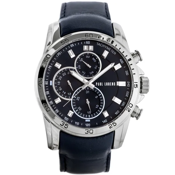 • Paul Lorens férfi karóra kvarc szerkezettel, kék bőrszíjjal 47 mm