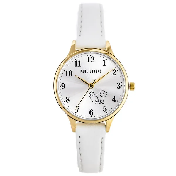 • Paul Lorens női kvarc karóra, fehér bőrszíj, aranyszín tok, 30 mm