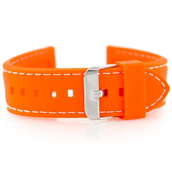 • Narancssárga gumióraszíj fehér varrással, 22 mm