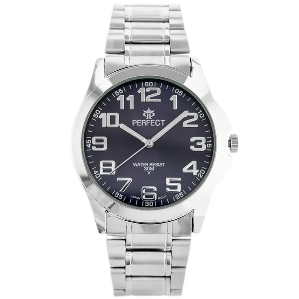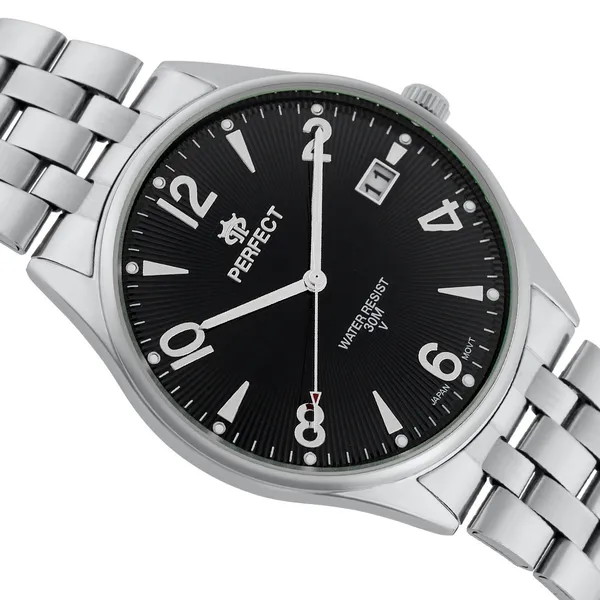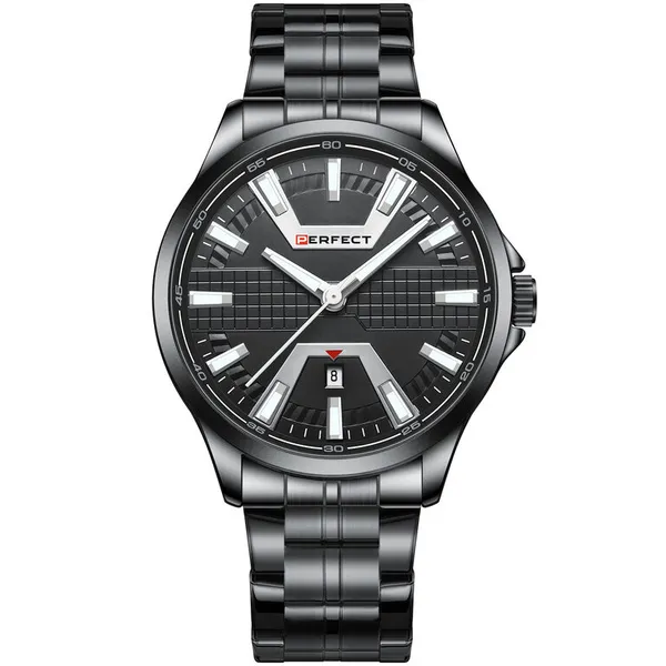 • Perfect férfi kvarc karóra, fekete fém szíjjal, 46 mm