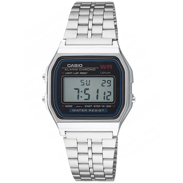 • Férfi Casio A159W-N1DF digitális karóra, ezüst acél, fekete
