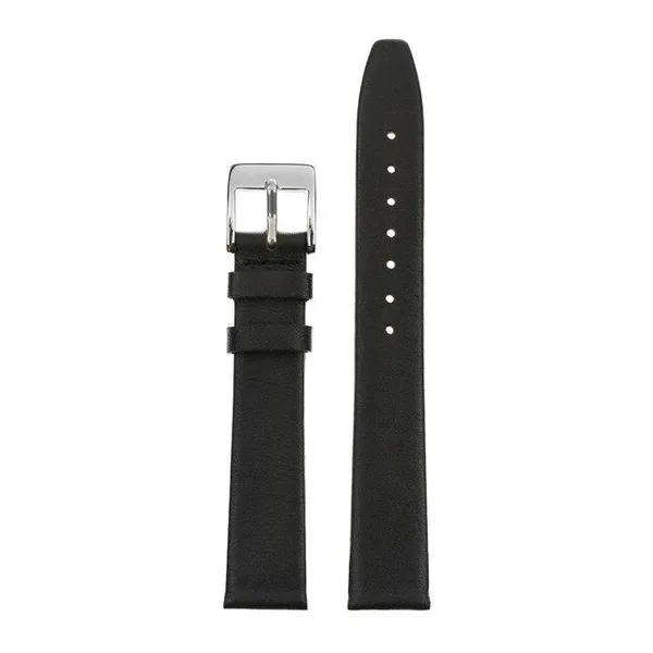 • Fekete természetes bőr óraszíj ezüstszínű csattal 18 mm