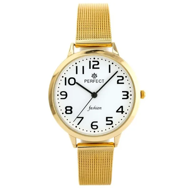 • Perfect női кварc karóra, aranyszínű fém szíjjal, ezüst számlap