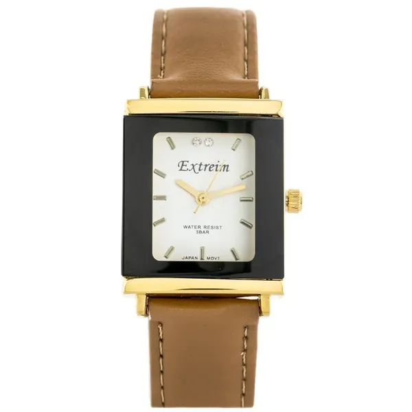 • Női kvarc karóra téglalap alakú fehér számlappal, barna szíjjal