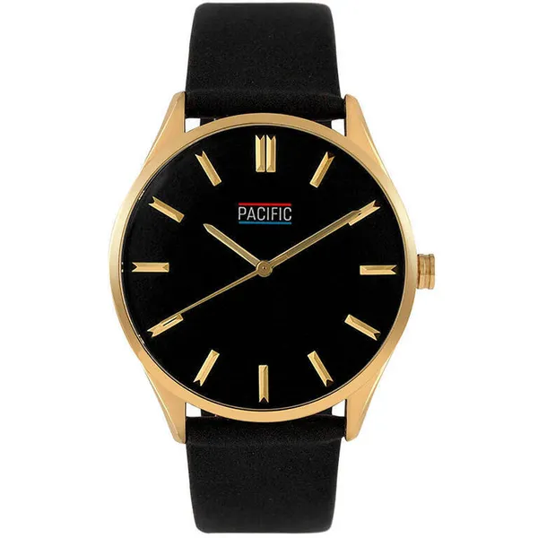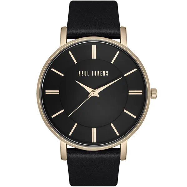 • Férfi karóra fekete bőrszíjjal, aranyszínű tokkal, 42 mm