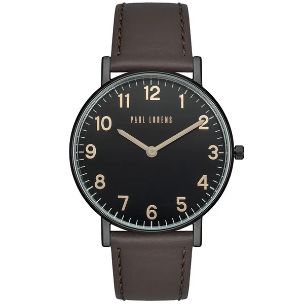 • Férfi kvarc karóra fekete tokkal, barna bőrszíjjal, 40 mm