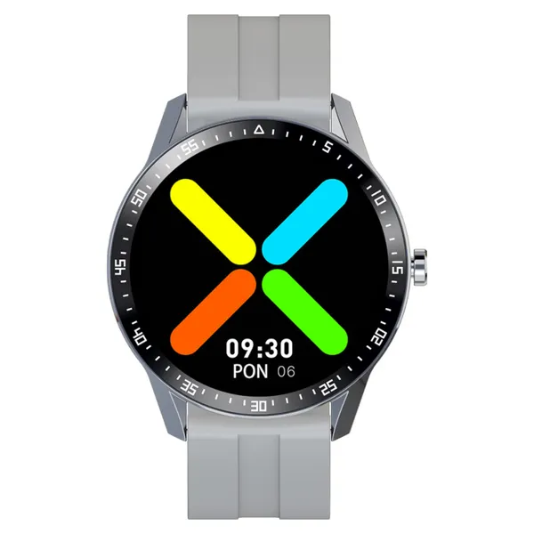 • Férfi okosóra ezüst tokkal, szürke szilikon szíjjal, IP68