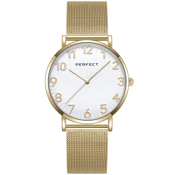 • Perfect női кварc karóra, arany fém szíjjal, ezüst számlappal