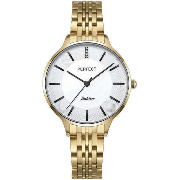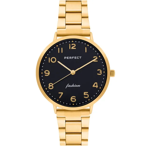 • Perfect női karóra fekete számlappal, arany színű fém szíjjal