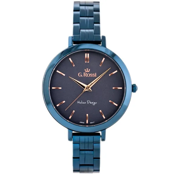 • Sötétkék gumióraszíj 18 mm, rózsaarany csattal