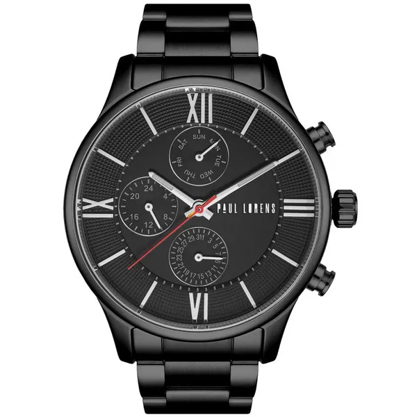 • Paul Lorens férfi kvarc karóra fekete fém szíjjal, 45 mm