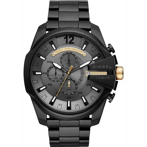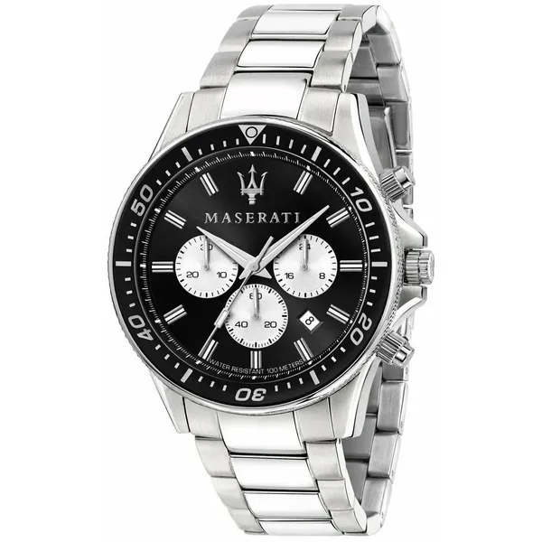 • Férfi karóra kronográffal, fekete számlappal, acél szíjjal, 44 mm