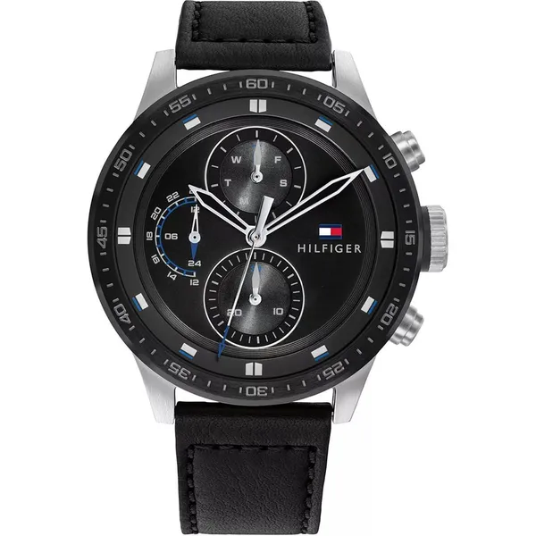 • Tommy Hilfiger férfi karóra Trent 1791810, fekete bőrszíj, 46 mm