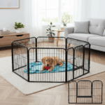 A 6 paneles fémből készült, összecsukható karám tetszés szerint alakítható, így kedvence biztonságban mozoghat a lakásban vagy a kertben. Gyors össze- és szétszerelése, egykezes záras ajtaja, valamint a kompakt, lapra csukható tárolás egyszerűvé teszi a mindennapi használatot.