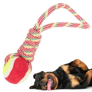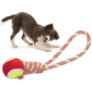 Ez a teniszlabdás „tugger” játék tökéletes kiképző eszköz kisállatod számára. Magas minőségű anyagokból készült, és kifejezetten hatékony és biztonságos edzést biztosít mind a kutyának, mind a gazdának.