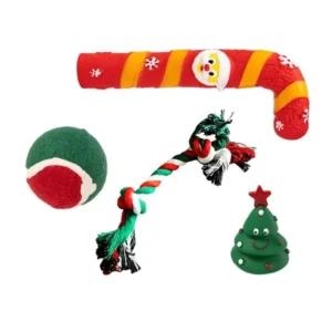 Karácsonyi hangulatot teremtenél a négylábú családtagodnak? A 4 részes kutyajáték készlettel változatos játékélményt és biztonságos szórakozást kínálhatsz neki, akár beltéren, akár a hóban.