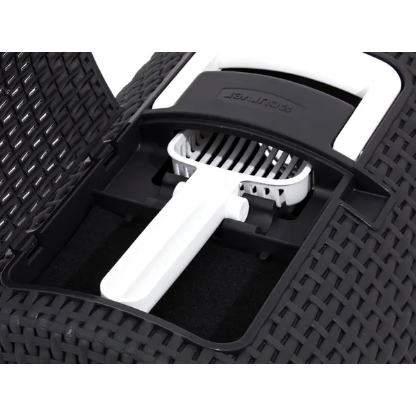 A Curver Pet Life fedett macskaalom stílusos rattanhatású megjelenést és kiemelkedő funkcionalitást kínál, hogy kedvencének és Önnek is higiénikus, szagmentes környezetet biztosítson.