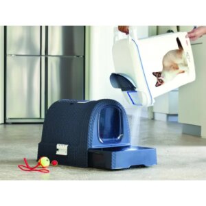 • Diszkrét fedett kialakítás: csökkenti a szagok terjedését és privát teret ad a macskának.