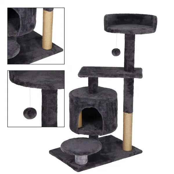 5 szintes grafit macskabútor kaparófával, 87 cm