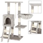 6 szintes, 96 cm magas macskabútor, amely kaparóoszloppal, kuckóval és peremes pihenővel mozgatja meg kedvenced ösztöneit, miközben óvja a lakás bútorait, és elegáns szürke/krém árnyalatával illeszkedik bármely enteriőrbe. Stabil alapja és strapabíró szizál borítása hosszú távú, teljesen biztonságos használatot garantál.