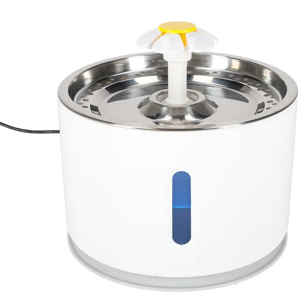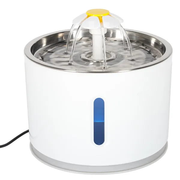 A 2,4 literes, keringetett vízű automata szökőkút segít, hogy kutyád és macskád mindig friss, oxigéndús vizet ihasson. A rozsdamentes acél tálca higiénikus, könnyen tisztítható, a kék LED-világítás pedig éjszaka is láthatóvá teszi a vízszintet.