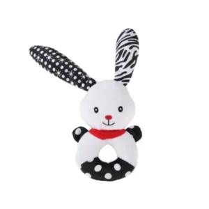 A fekete-fehér mintás, sípolóval ellátott plüss nyuszi játékosan fejleszti a látást, hallást és finommotorikát már újszülött kortól. Puha anyaga biztonságos az ölelgetéshez, könnyen kezelhető formája pedig megkönnyíti a kis kezek számára a felfedezést.
