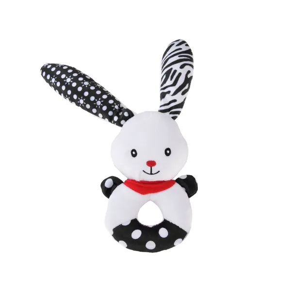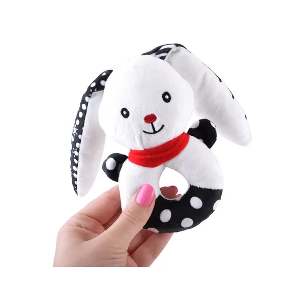 Kontrasztos plüss csörgő nyuszi sípolóval, 14 cm