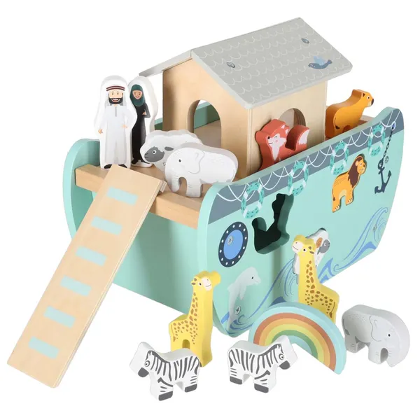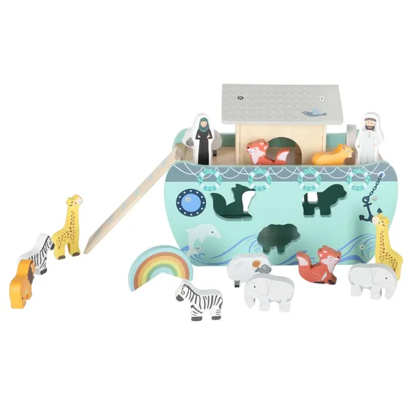 A festett fa elemek kellemes tapintásúak, strapabírók, és természetes látványt nyújtanak a gyerekszobában. A történetmesélést Noé és felesége figurája, illetve a fel- és leszerelhető tető, létra és kormány teszi még izgalmasabbá.