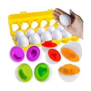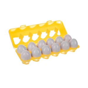 A Montessori elvek alapján készült tojás kirakó játék játékosan segíti a 2 évesnél idősebb gyerekek forma- és színfelismerését, valamint a logikus gondolkodást. A 12 darabos készletben minden tojásfél különböző formát és színt kapott, így a kicsiknek párba kell illeszteniük a féltojásokat. A lekerekített, ABS és PP műanyagból készült elemek nem tartalmaznak mérgező anyagokat, ezért biztonságosan használhatók a kis kezek számára.