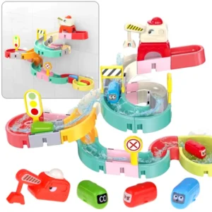 A 37 részes, csúszdás autópálya készlet feldobja a mindennapos esti fürdetést, és játékos élménnyé varázsolja a kádban vagy a zuhanyzóban töltött időt. A színes elemek könnyen összeilleszthetők, így a gyerekek saját, vízen úszó pályát építhetnek, amelyen babformájú kisautóik versenyeznek.
