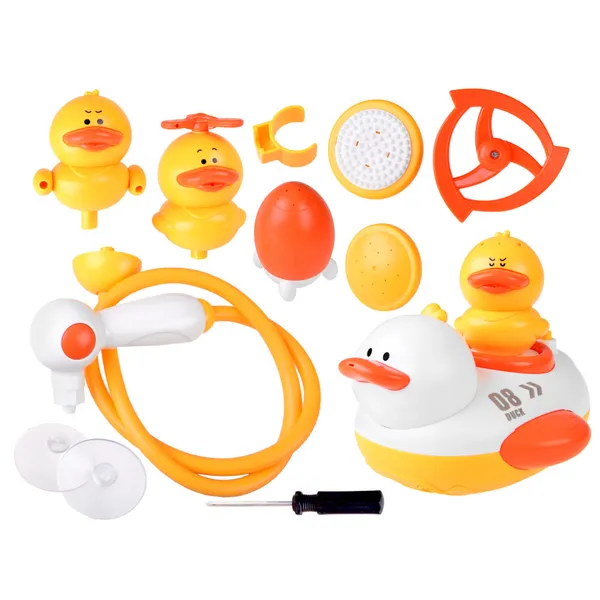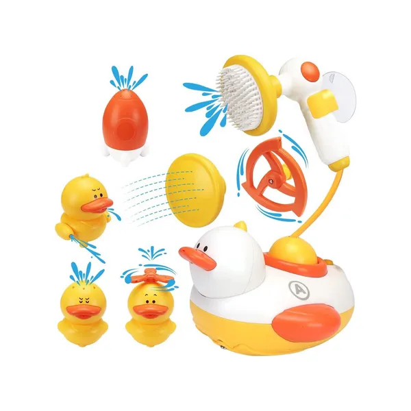Úszó fürdőkacsa vízpumpás játékszett, cserélhető kacsákkal és zuhannyal