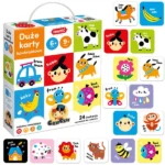 Az első év vizuális ingerei kulcsfontosságúak: a 24 nagyméretű, fekete-fehér-piros kontrasztú képkártya segíti a baba látásának, figyelmének és beszédének fejlődését már 6 hónapos kortól. A lapokat tartós kartonra nyomtattuk, lekerekített sarkokkal, biztonságos festékkel.