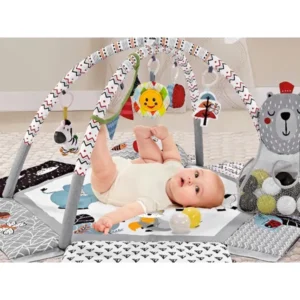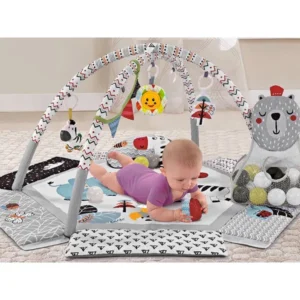 A szőnyeg jól működik, amikor a gyermek még nem tud önállóan ülni. Hanyatt fekve elérheti a játékokat, és gyakorolhatja a játékok megfogását, hason fekve pedig erősíti a gerincizmokat, ami pozitívan hat a későbbi testtartásra.