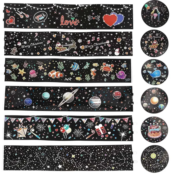 • 6 cserélhető motívumkorong: csillagképek, bolygók, víz alatti világ, születésnap, karácsony, Valentin-nap