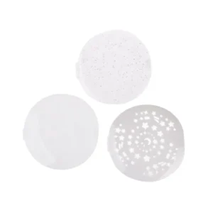 - Csillogó dombornyomással – a lemezen lévő geometriai minták kaleidoszkópként működnek megvilágításkor – különböző alakzatokat és kompozíciókat vetítenek a falakra és a mennyezetre, egyedi hatást keltve.