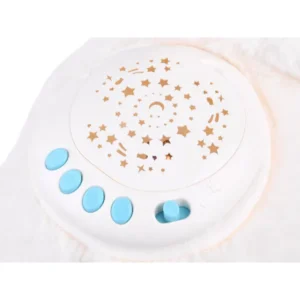 Plüss bárány projektorral nagyszerű ajándék lesz az új családtag és az újdonsült szülők számára. A bárány puha, kellemes tapintású anyagból készült. Szemei és szája hímzettek, így a játék teljesen biztonságos és alkalmas a gyermekek számára már az élet első napjaitól kezdve. A projektor az idősebb gyermekek számára is hasznos lehet, akik nehezen alszanak el egyedül. A bárány ölelésre készült, és biztosan elűzi az összes szörnyet a szekrényből, hogy a kicsi biztonságban érezhesse magát elalváskor.