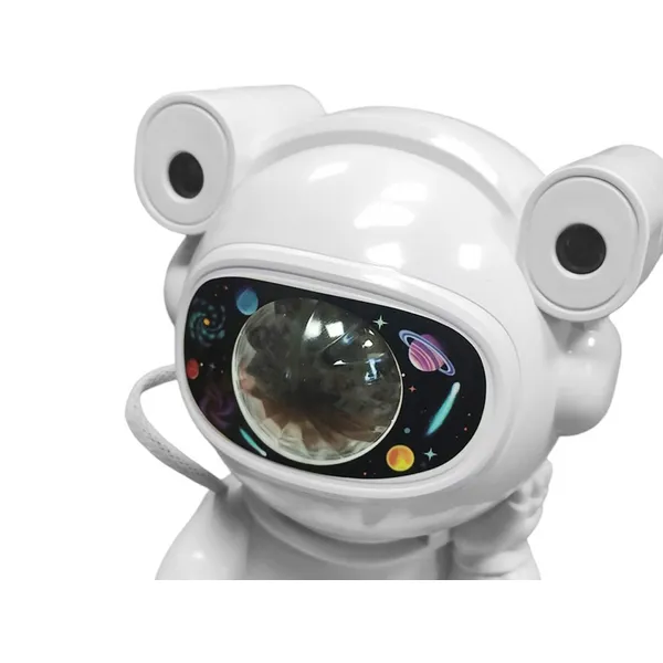 A csomag tartalma: Űrhajós csillag projektor, USB-C kábel, távirányító (CR2032 elemmel), matricák, eredeti doboz.