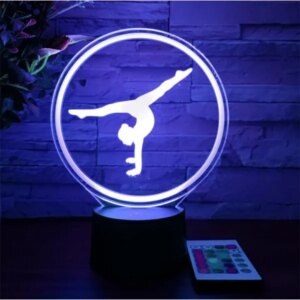 LED-es éjszakai lámpa akrobata alakban (akrillemezre nyomtatva). Sík felületre történő elhelyezésre tervezték (külön erre a célra szolgáló talapzat, amely egyben tápegységként is funkcionál). A lámpa fényes, változtatható színű LED háttérvilágítást használ. A lámpa 3 AA elemmel vagy hagyományos USB porton keresztül működtethető (nem kell a hálózatra csatlakoztatni). Tökéletes relaxációs világításként vagy gyermekszobai éjjeli lámpaként. Távirányítóval is rendelkezik, amellyel többféle fénymód közül választhat.