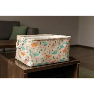 A dinoszauruszos minta nemcsak vidám hangulatot teremt a gyerekszobában, de praktikus tárolóként is szolgál a játékok, plüssök vagy szennyes számára. A tágas L méretű, téglalap alakú kosár merevített falának köszönhetően üresen is megáll, mégis könnyedén összehajtható, ha épp nincs rá szükség.