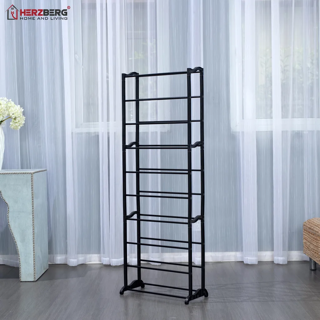 Herzberg 9 szintes összehajtható cipőtartó 27 pár cipőnek, 51cm x 16cm x 139cm, fekete