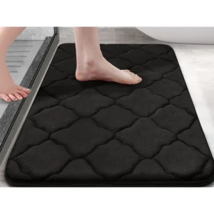 A fekete, 50×40 cm-es memóriahabos fürdőszobai szőnyeg luxus kényelmet és praktikus biztonságot kínál minden kilépéskor a zuhanyból vagy kádból.