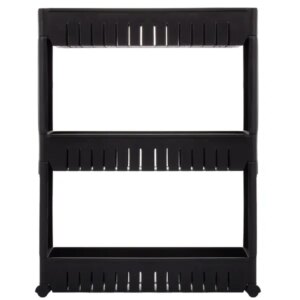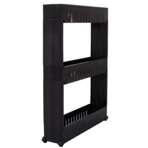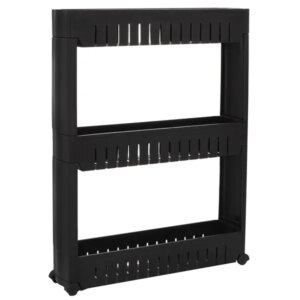Fekete 3 polcos gurulós tároló, pp, 70x54x12,5 cm