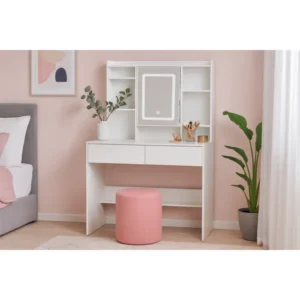 Teremtsd meg saját szépségsarkodat ezzel a modern, fehér sminkasztallal, amely felnyitható, LED-es tükörrel rendelkezik. A három választható fényárnyalat (hideg, semleges, meleg) és az érintőkapcsolós fényerő-szabályozás tökéletes látási viszonyokat biztosít a sminkeléshez.