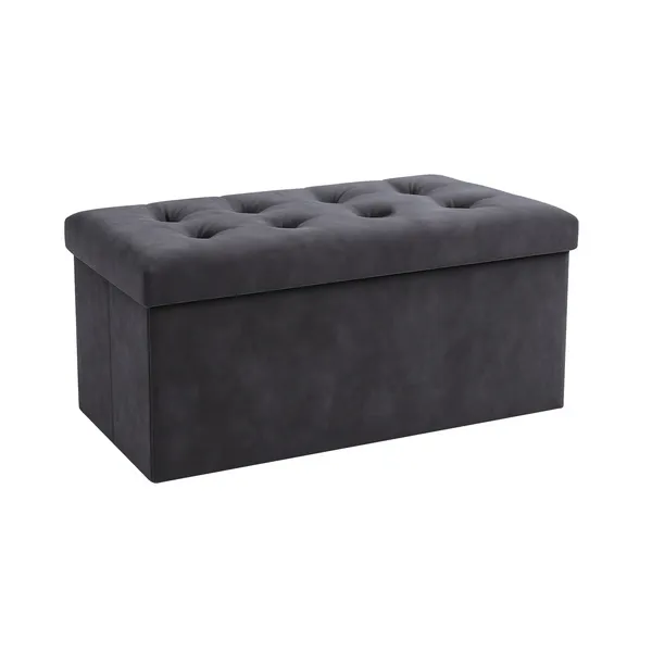 Összecsukható szürke bársony puff 110 l tárolóval, 76×38×38 cm