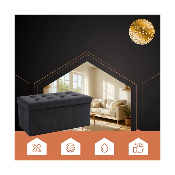 Az elegáns, összecsukható bársonypuff 110 literes belső rekeszt rejt, így egyetlen mozdulattal teremthetsz extra ülőhelyet és rendet az otthonodban. Puha, vízlepergető felülete kényelmes pihenést nyújt, miközben erős MDF váza nagy terhelhetőséget biztosít.